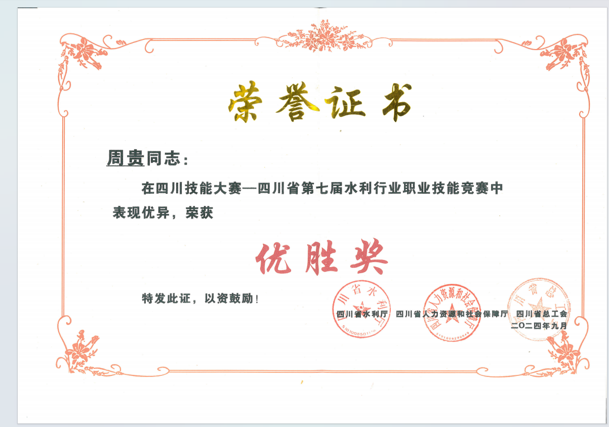 四川技能大赛——四川省第七届水利行业职业技能竞赛,由av淘宝 、四川省人力资源和社会保障厅、四川省总工会联合举办,是四川省水利行业级别最高、规模最大、影响最广的职业技能赛事。本次竞赛分为理论考核和技能操作两部分进行,汇聚了全省水利行业从事水工闸门运行一线技能工作的37个单位82名参赛选手。经过预赛、决赛两个阶段的激烈角逐,集团组织参赛选手向家坝公司周贵在本次竞赛中喜获优胜奖。