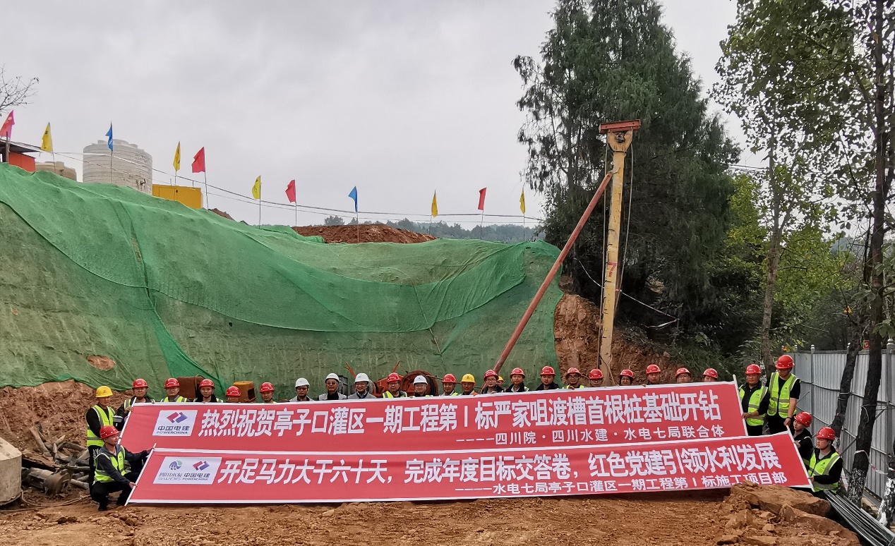 11月5日,由设计公司-建设公司-水电七局联合体亭子口灌区一期工程设计-采购-施工总承包(EPC)第I标项目部承建的严家咀渡槽首根桩基顺利开工,这是继亭子口灌区一期工程Ⅲ标段桐子坝渡槽后又一标志性工程建设。根据该部位地质情况,桩基采用冲击方式钻进。