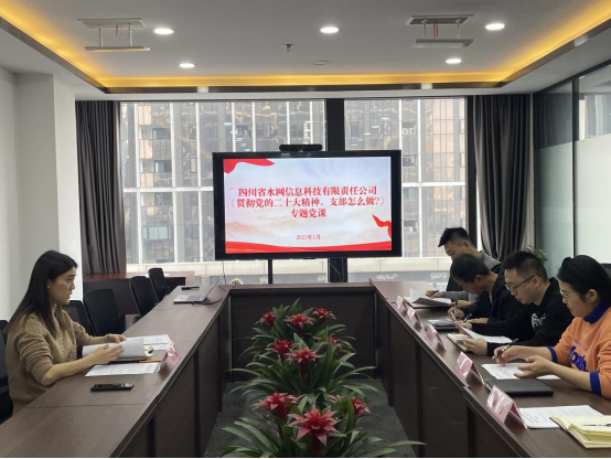 1月31日,投资公司下属水网科技公司党支部为深入贯彻落实党的二十大会议精神,组织专题党课教育活动,结合经营发展实际,开年即谋划公司全年重点工作。党支部书记马璐以《贯彻党的二十大精神,支部怎么做?》为主题,围绕党的二十大报告和2023年全国水利工作会议的精神为公司全体党员职工讲授了专题党课。