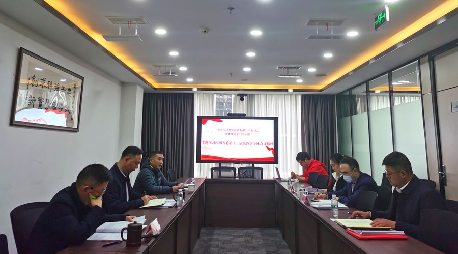 12月25日,投资公司召开党委理论学习中心组集中学习会议,深入学习中国共产党四川省第十二届委员会第四次全体会议精神。党委书记尹晓东及全体班子成员参加学习。