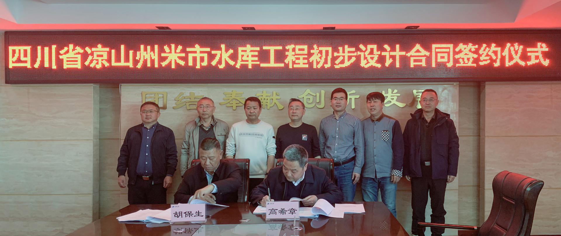 2月19日,四川水发设计公司党委书记、董事长高希章与四川省凉山州大桥水电开发有限责任公司董事长胡保生共同出席《米市水库工程初步设计阶段勘察设计合同》签约仪式,迎来集团龙年设计市场开拓“开门红”。