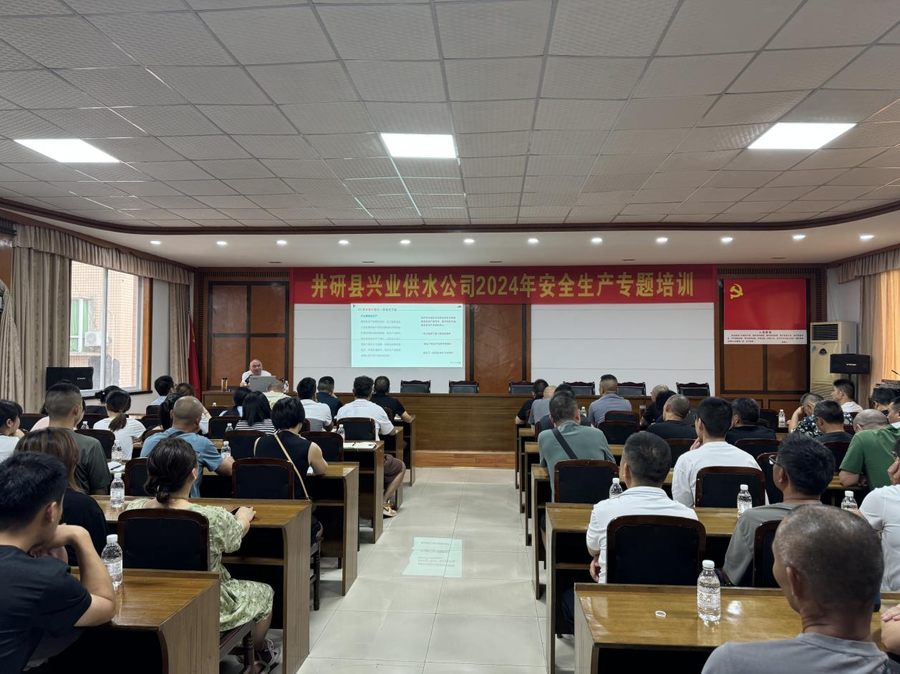 为深入学习贯彻落实党的二十大精神和习近平总书记关于安全生产重要论述,不断提升公司全员安全责任意识,筑牢公司安全供水防线。近日,投资公司下属企业井研县兴业公司有限责任公司组织全体职工开展了2024年安全生产专题培训活动,共计60余人参加培训。