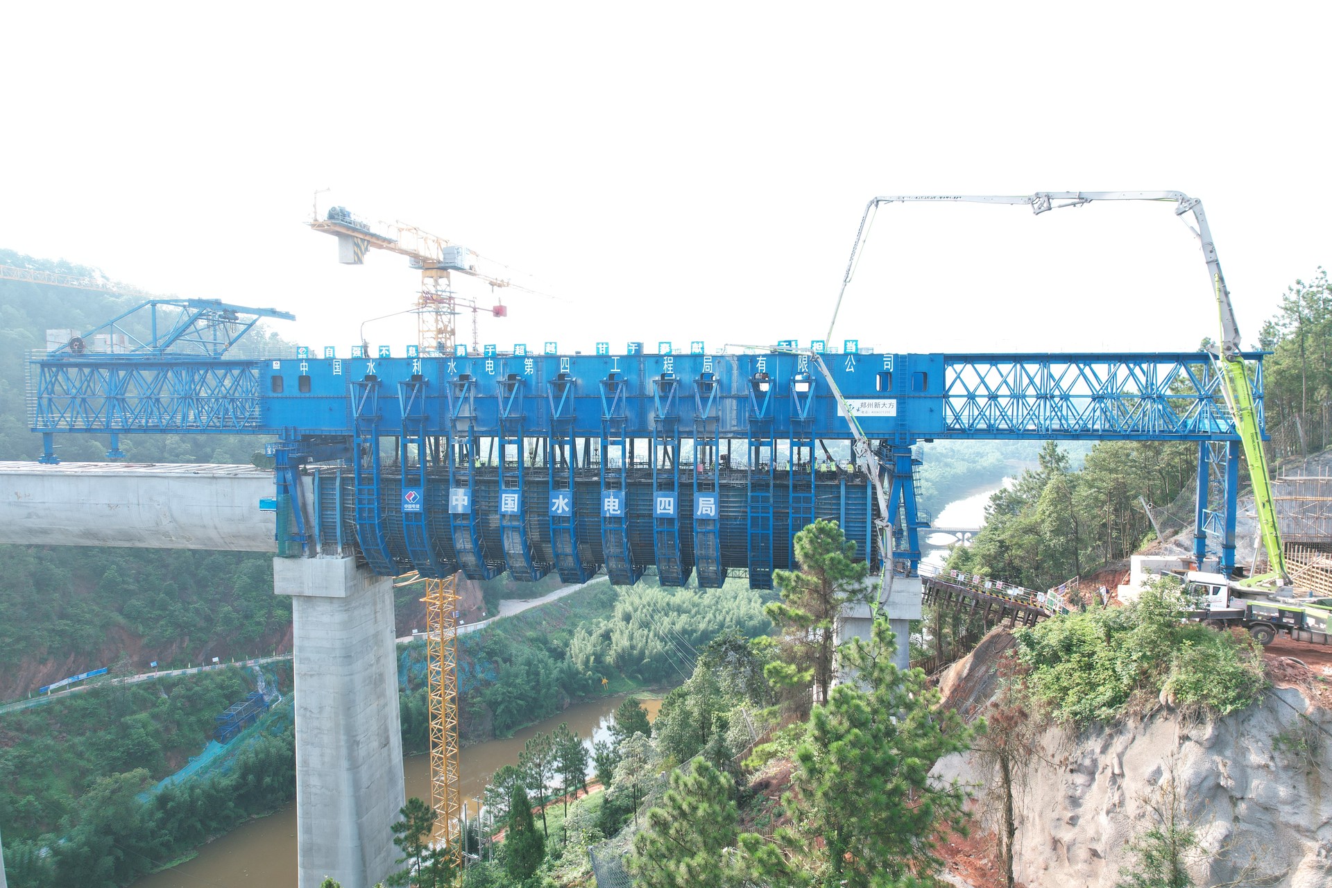 此次浇筑的清滩渡槽第二跨上跨内六铁路线,且受连续降雨影响,在施工过程中,参建各方克服施工场地空间小,技术难度大,危险性较高等困难,通过严格质量控制标准、提升施工组织水平,渡槽施工采取从第六跨浇筑至第一跨的倒序浇筑,此次浇筑的第二跨槽身,也是清滩渡槽倒数第二跨。
