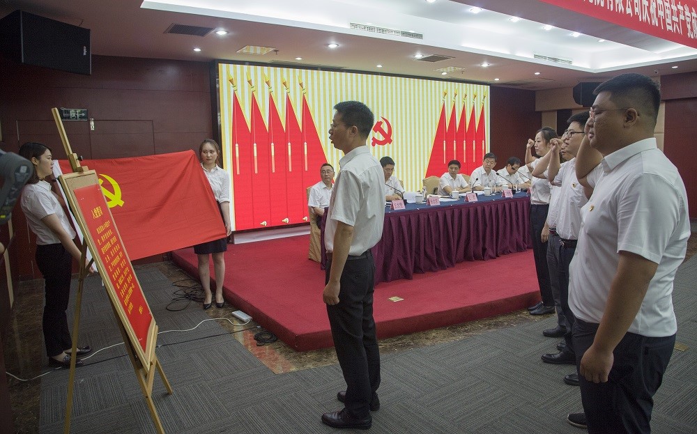 会上,举行了新党员入党宣誓仪式。公司党委副书记、董事王君领誓,5名新党员面对党旗,庄严宣誓。声声誓言铿锵有力,句句承诺掷地有声的表达了不忘初心、牢记使命的坚定信念。