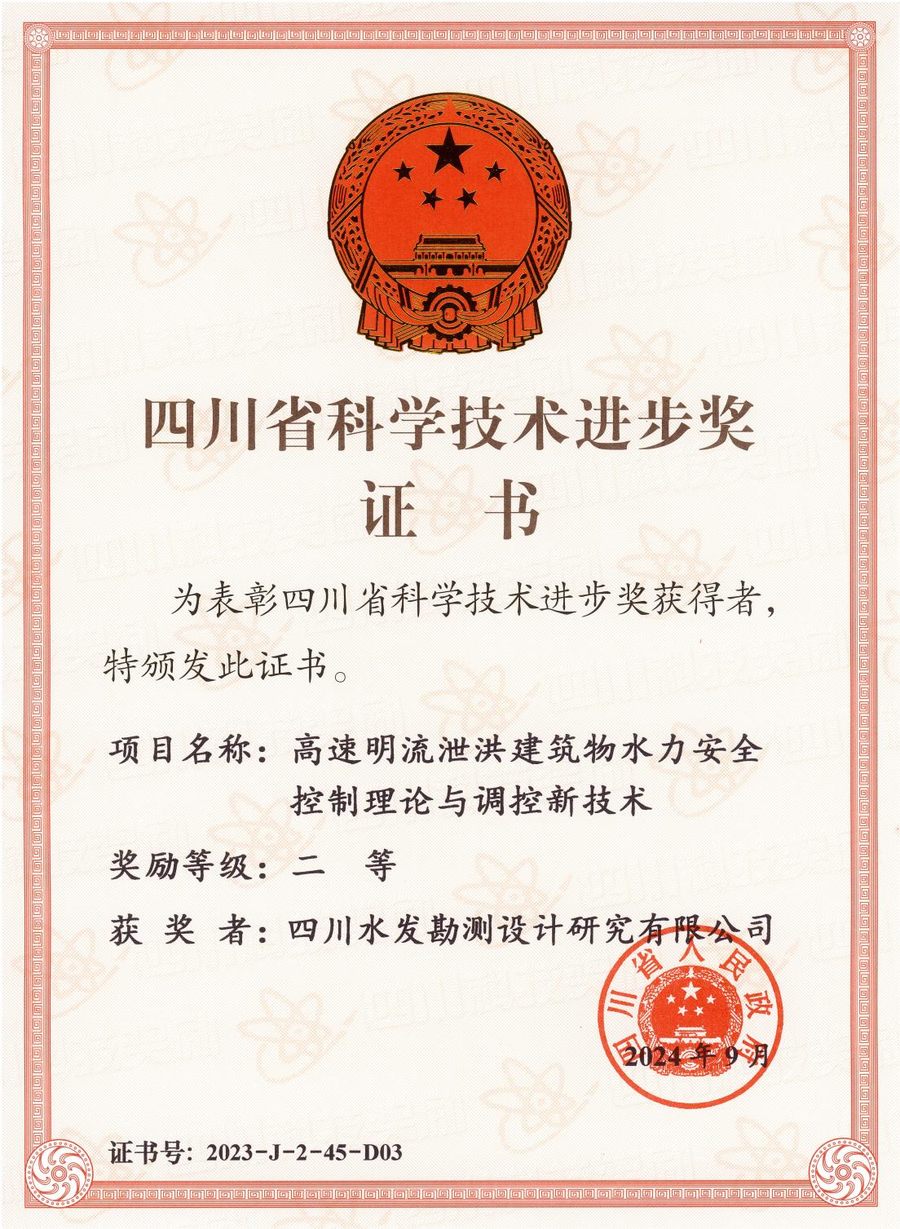 9月10日,四川省科学技术奖励大会在成都举行,会上宣读了省政府《关于2023年度四川省科学技术奖励的决定》。四川水发设计公司参与完成的“高速明流泄洪建筑物水力安全·控制理论与调控新技术”荣获四川省科学技术进步二等奖。该项目的研究成果应用于紫坪铺水利枢纽、锅浪跷水电站等25项水利水电工程,取得了显著的经济、社会和生态环境效益。