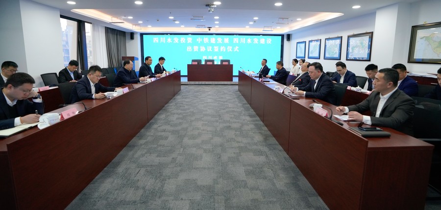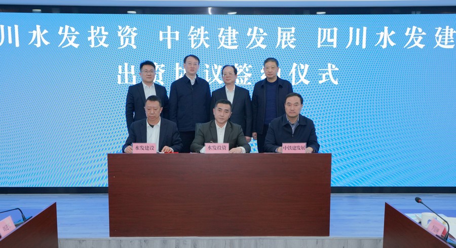 四川水发投资有限公司党委副书记、总经理郎波,四川水发建设有限公司副总经理李银刚,中铁建发展集团公司副总经理刘小刚共同签署出资协议。