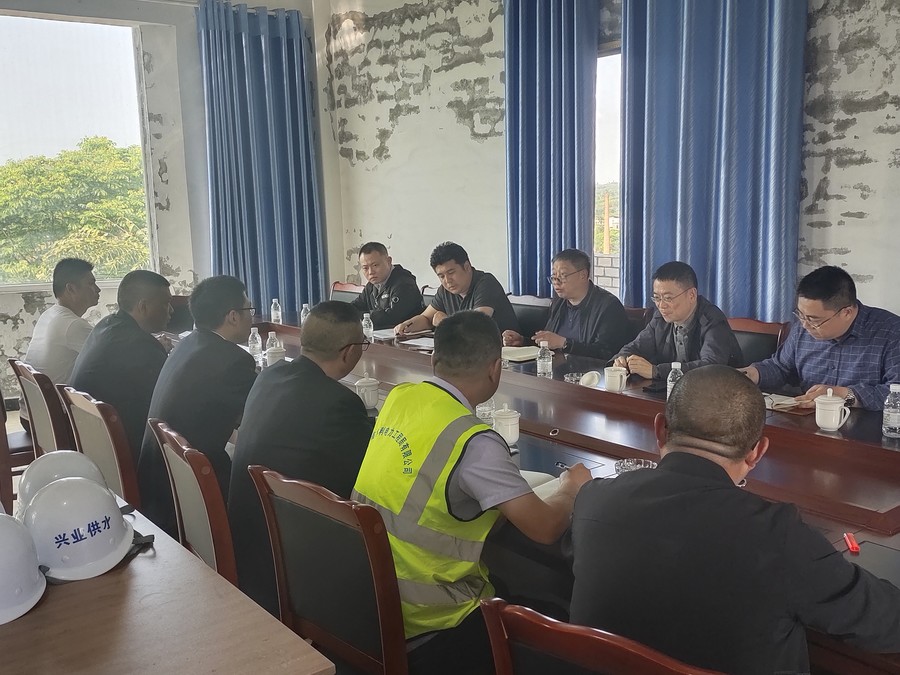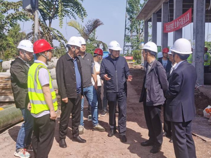 4月25日,集团董事罗国书率队到建设公司承建的乐山市井研县城乡一体化供水工程—马踏水厂改扩建工程项目开展汛前安全专项检查。