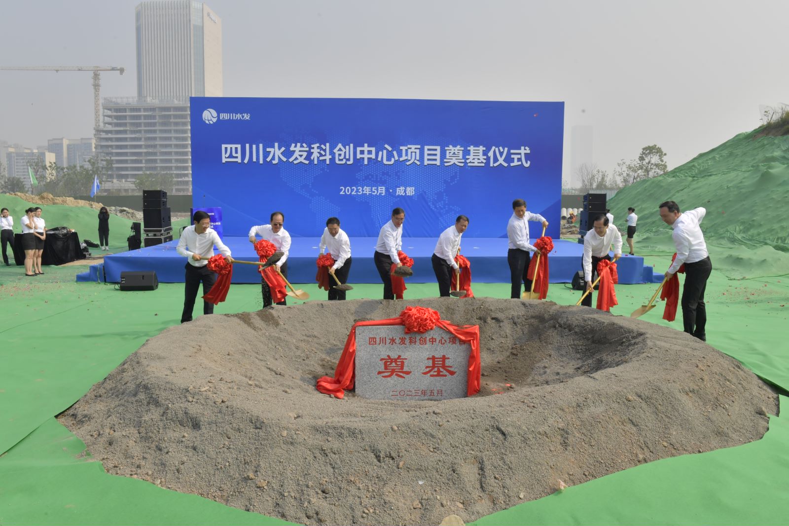 5月16日,四川水发科创中心在天府新区总部商务区隆重举行奠基仪式。水利厅党组书记、厅长郭亨孝出席仪式并宣布项目正式开工。水利厅党组成员、副厅长张强言,天府新区党工委书记周先毅,天府新区党工委副书记、管委会主任陈历章,水发集团党委书记、董事长钟杰,中国五冶集团党委书记、董事长朱永繁,水发集团党委副书记、总经理向仕春参加奠基活动。水发集团党委副书记、副总经理、水发投资公司党委书记、董事长尹晓东主持奠基仪式。