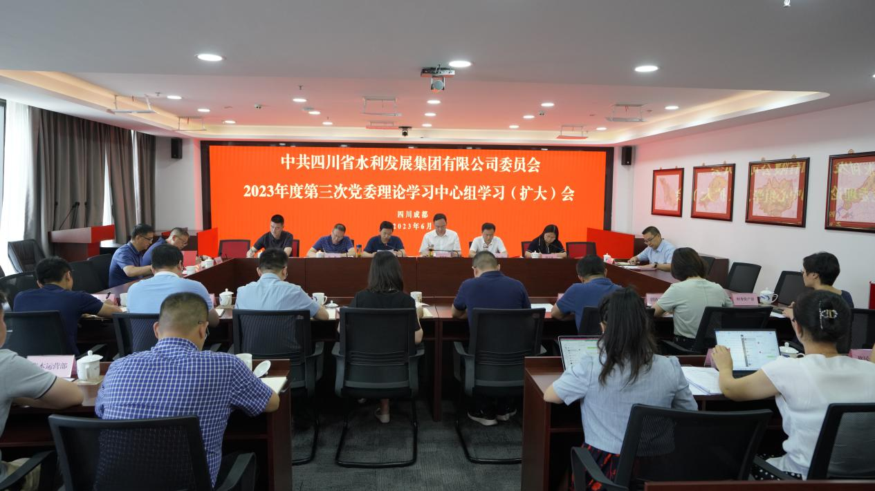 6月26日,集团召开2023年度第三次党委理论学习中心组学习(扩大)会,围绕“ 以不断提高推动高质量发展本领、服务群众本领、防范化解风险本领”开展专题研讨。结合《国家水网建设规划纲要》、实地研学感悟,重点交流运用党的创新理论解决实际问题的体会,提出加强和改进工作的思路举措。受集团党委书记、董事长钟杰委托,集团党委副书记、董事、总经理向仕春主持会议并讲话。会议集中学习了郭亨孝厅长在2023年第三次厅机关职工(扩大)会议上的讲话,5名领导班子成员作重点发言。