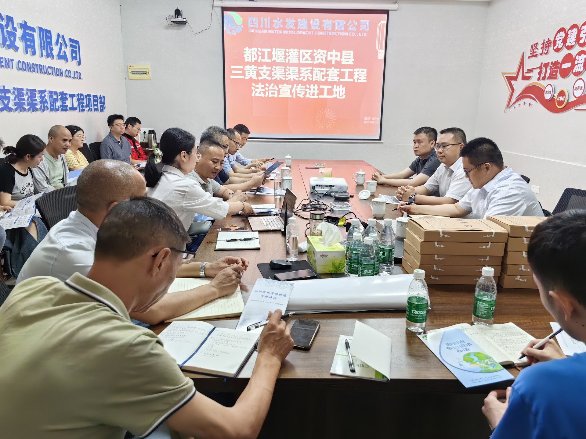 为进一步增强建筑企业和一线施工人员的法治意识和法治观念,5月14日,集团副总经理郑祖杰带队到建设公司都江堰灌区资中县三黄支渠开展“法治宣传进工地”普法宣传活动并主持召开座谈会,建设公司董事、总经理罗雪、集团审计法务部负责人等出席会议。