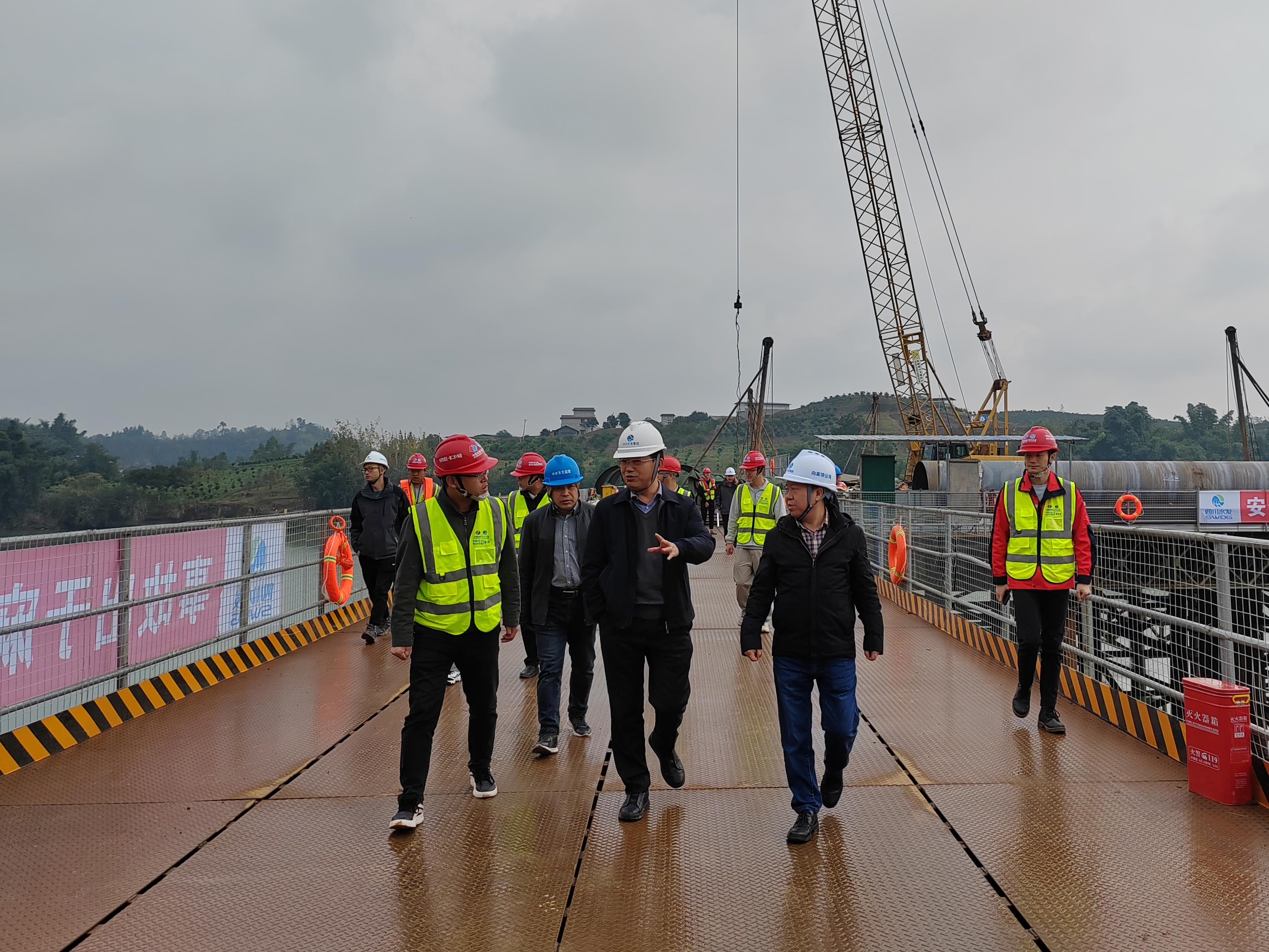 为贯彻落实水利厅近期关于向家坝一期工程通水推进工作和省本级国债水利项目推进工作会议有关精神。11月20日,集团党委副书记、副董事长、总经理向仕春带队到向家坝灌区一期工程开展督导工作。向仕春一行先后去到一期一步工程黄河镇水库出水口、凌家湾泵站,以及一期二步沱江管桥、新窝咀隧洞等施工现场,重点听取了向家坝公司和部分施工单位针对工程扫尾、试验验收、通水活动准备、国债项目建设推进等工作开展情况的汇报,同时现场召开专题会议研究了一期工程通水活动方案的筹备情况。