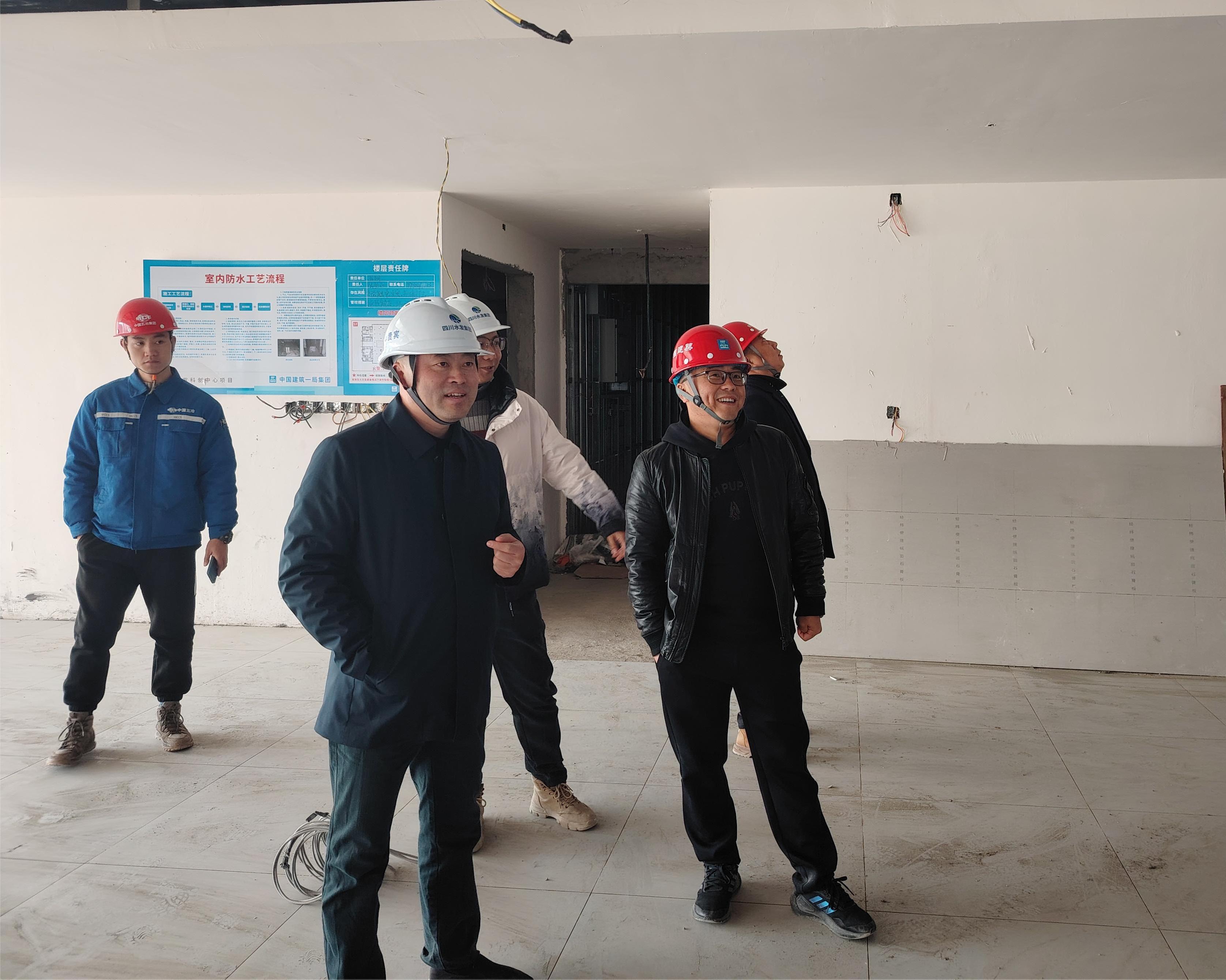 唐克飞一行实地检查各楼层装修施工情况,对项目安全、质量及施工进度提出了要求,并对项目参建各方在施工质量、进度方面作出的努力表示肯定。