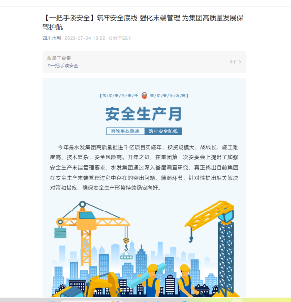 图:集团党委书记、董事长、安委会主任钟杰在“av淘宝 ”公众号发表了题为《筑牢安全底线 强化末端管理 为集团高质量发展保驾护航》的署名文章