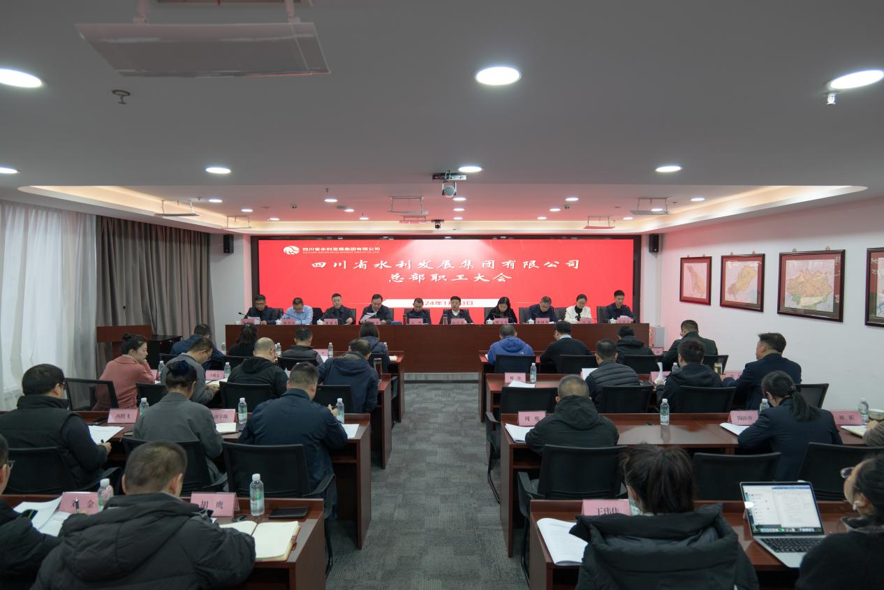 1月23日,集团总部召开职工大会,集团党委书记、董事长王华,党委副书记、副董事长、总经理向仕春等在家的集团领导出席大会,总部全体职工参加会议,集团总部工会主席李永静主持会议。