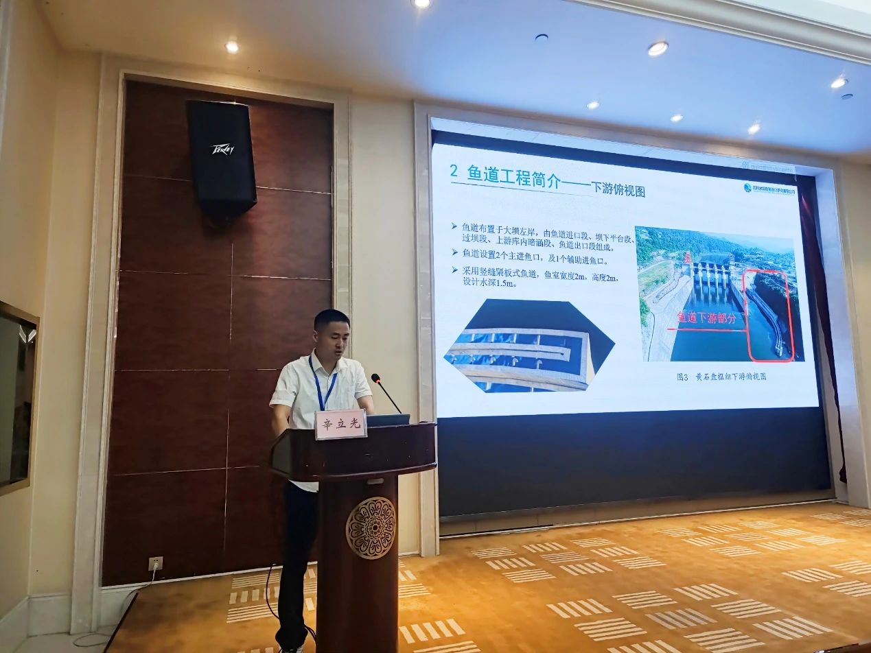 集团参与展示交流的作品是《一种适应水位变幅的大坝升鱼塔结构》,该作品获得了第二届水利职工创新成果二等奖,由设计公司主设工程师辛立光作为代表在会上进行交流展示。集团设计公司在黄石盘水库鱼道工程采用了一种能够适应库水位变幅的升鱼塔结构设计,该结构已获得国家实用新型专利。升鱼塔结构采用升船机的原理,自动控制升鱼塔内水位的自由升降,实现升鱼塔内水位与上游水库任意水位衔接,达到了鱼类通过升鱼塔自由进入上游水库的目的。