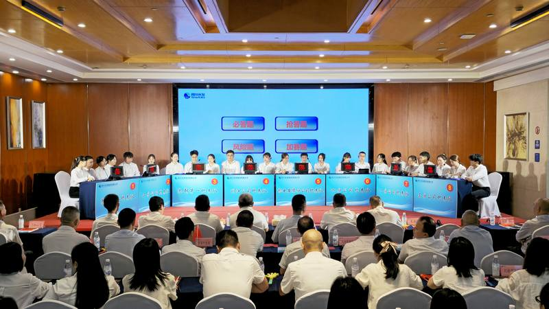 决赛现场,全体干部职工在雄壮豪迈的歌声中齐唱《歌唱祖国》,随着公司董事、总经理罗雪宣布开赛,决赛正式开启激烈角逐。竞赛围绕党建宣传、群团建设、决策治理、战略管控、安全生产、职能管理和业务运行等方面,在“必答题--初露锋芒”“抢答题--争分夺秒”“风险题--共克险关”等环节,各组选手配合默契、反应迅速,以进取的精神、务实的作风精准判断、踊跃答题;现场观众积极参加现场互动竞答,充分展示了扎实的理论功底、丰富的知识储备和良好的精神风貌。
