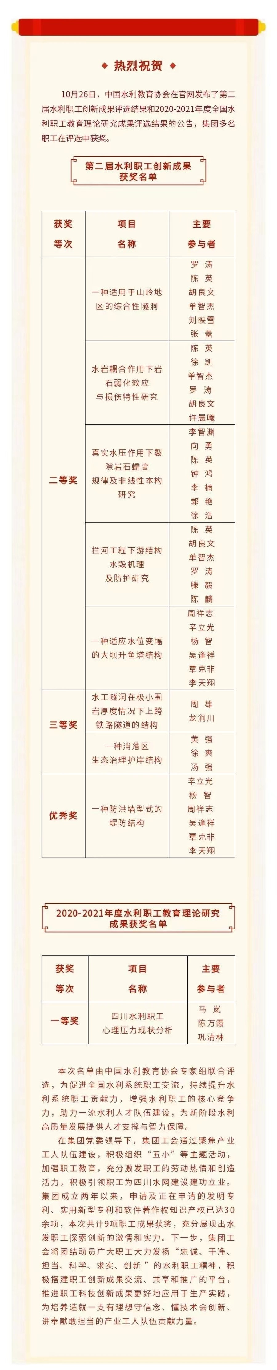 喜报!集团在第二届水利职工创新成果获奖名单和2020-2021年度水利职工教育理论研究成果获奖名单出炉