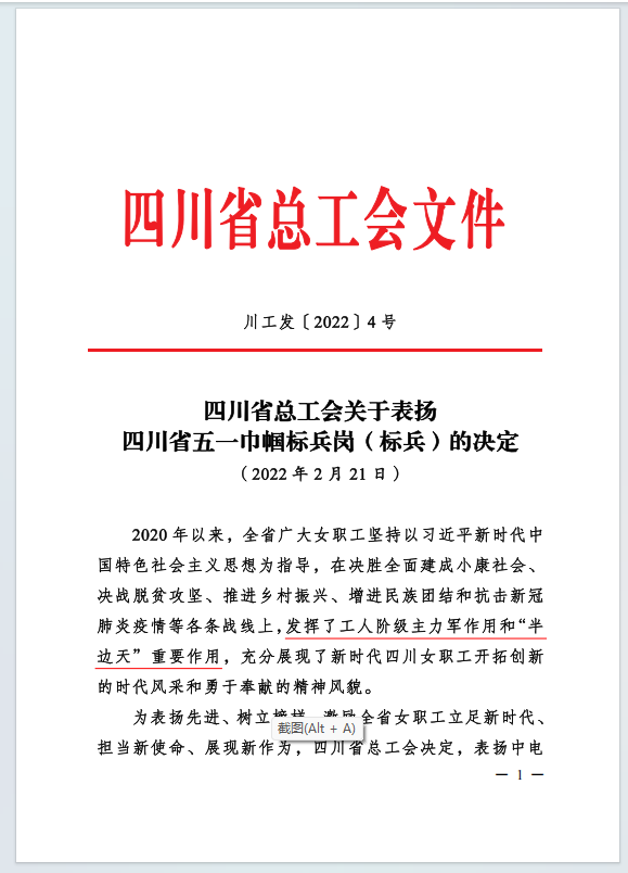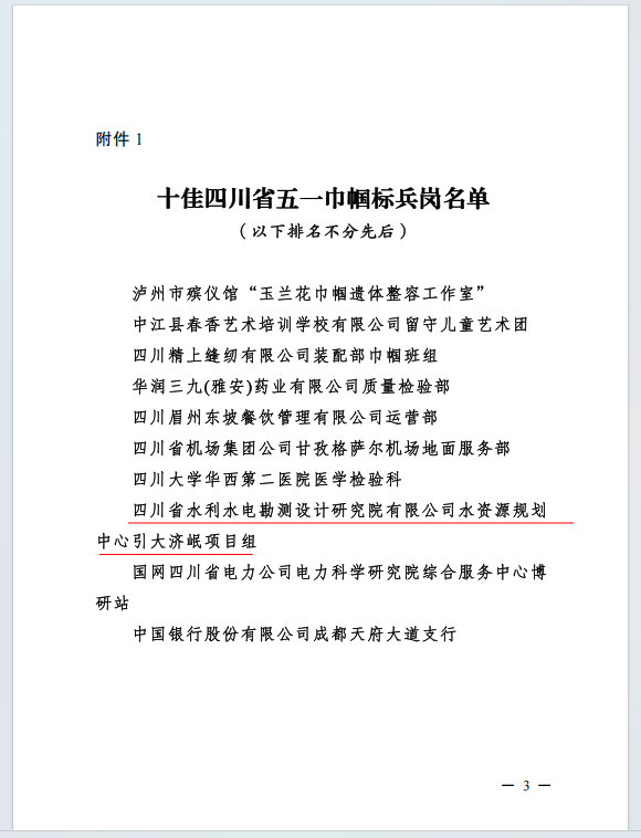 设计公司水规划中心引大济岷项目组荣获“十佳四川省五一巾帼标兵岗”称号