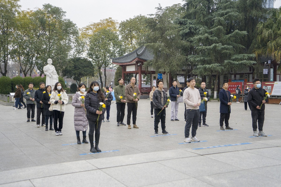 按照活动进程,团员青年们在成都市十二桥烈士墓文化公园深切回顾了“十二桥”惨案历史,对革命烈士进行了献花缅怀,在烈士墓广场重温入团誓词,掀起了一腔热血。