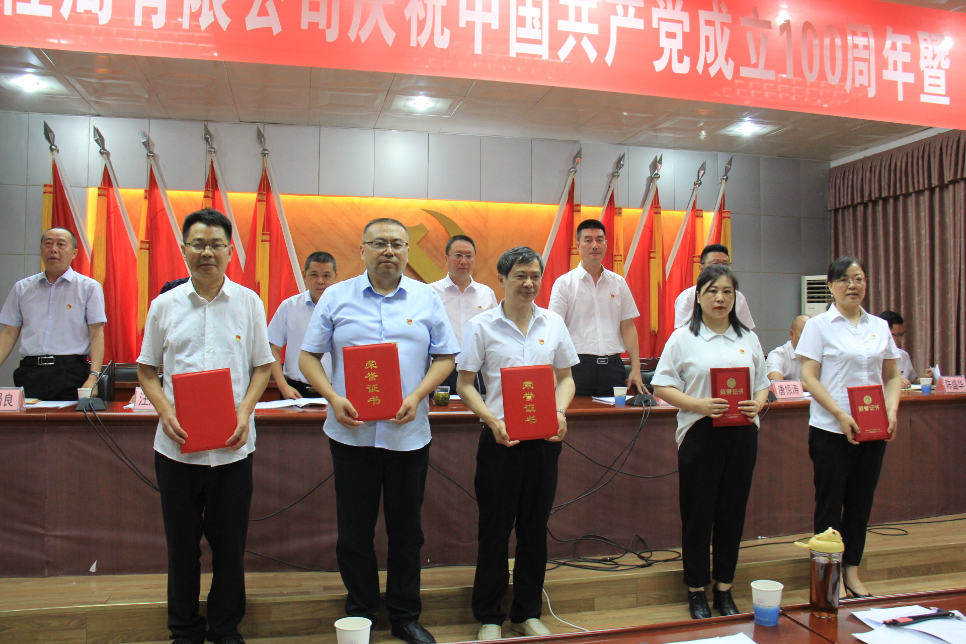 代勇代表公司党委首先向受到水利厅机关党委、集团党委和公司党委表彰的先进集体和个人表示祝贺。他带领全体党员共同回顾了党的百年奋斗历程,颂扬了100年来党团结带领全国各族人民取得的辉煌成就,与全体党员共同学习和感悟百年党史中蕴含的精神实质,并结合公司发展历程,号召全体党员用百年党史沉淀的力量,撸起袖子加油干,把公司打造成集团产业链上最亮眼的一环,为实现公司转型发展、创新发展、高质量发展作出新的贡献,以实际行动践行好初心使命。