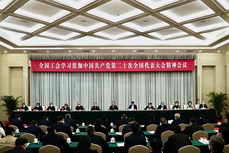 全国工会学习贯彻中国共产党第二十次全国代表大会精神会议10月24日以电视电话会议形式召开。全国人大常委会副委员长、中华全国总工会主席王东明出席会议并讲话,强调各级工会要把学习宣传贯彻党的二十大精神,作为当前和今后一个时期的首要政治任务,找准党的二十大精神与工会工作的切入点和结合点,踔厉奋发、勇毅前行、团结奋斗,在新时代新征程上不断开创党的工运事业和工会工作新局面。