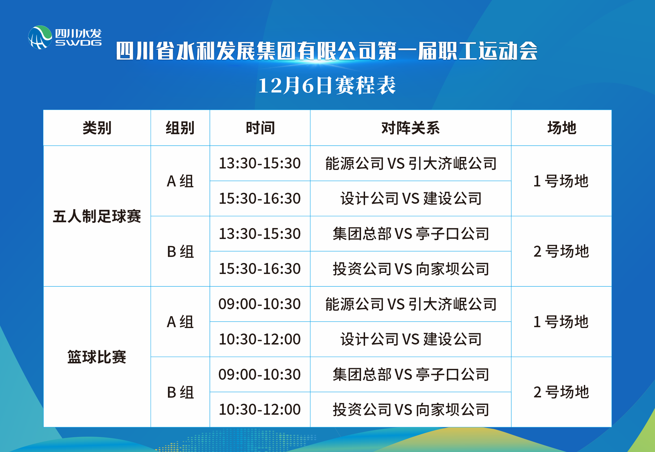 此次运动会分为2个阶段。12月5日-12月8日为预赛阶段,比赛项目包括:五人制足球赛、篮球赛、羽毛球混合团体赛、乒乓球混合团体赛,来自集团总部及7个下属公司共220余名运动员以循环赛和排位赛的方式角逐4个类别,8个决赛名额。12月9日,将举行此次运动会开闭幕式,球类比赛决赛以及趣味运动会。