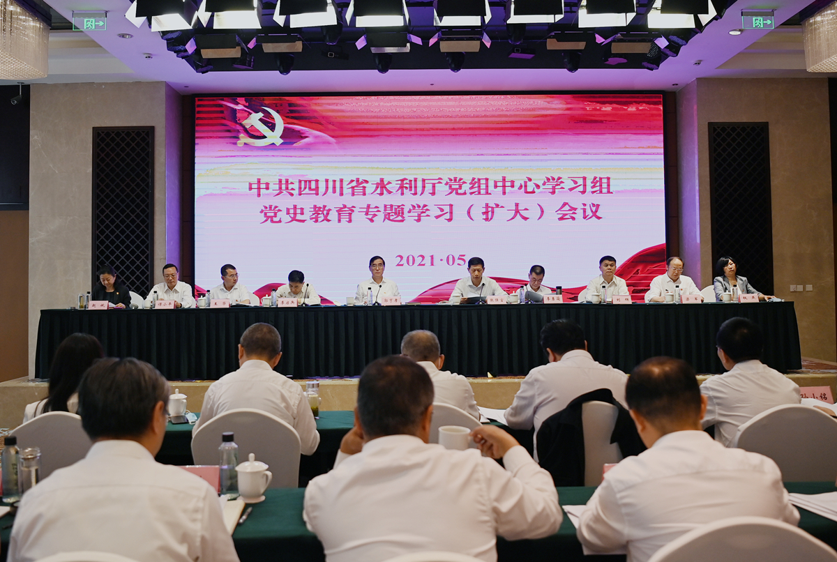 为深入推进全省水利系统党史学习教育活动,承前启后、继往开来,切实把水利厅党组前期加强党史理论学习教育,深入调查研究和广泛听取各方意见建议的成果转化为助推av淘宝 高质量发展的不懈动力。5月13日,水利厅党组中心学习组党史教育专题学习(扩大)会在成都召开。会议在认真听取党史教育专家刘伟教授的党史教育辅导课后,深入分析研判新时期新阶段av淘宝 改革发展面临的新形势新机遇和新挑战,提出了新时代实现av淘宝 高质量发展的“3226”总体工作思路。水利厅党组书记、厅长郭亨孝主持大会并作主题报告和总结讲话。厅党组成员、副厅长张强言解读《四川省“十四五”水安全保障规划报告(汇报稿)》。李启兵、李勇蔺、王华、刘辉、谭小平、梁军、赵斌、权燕等厅党组中心学习组成员及在职厅级干部出席会议。