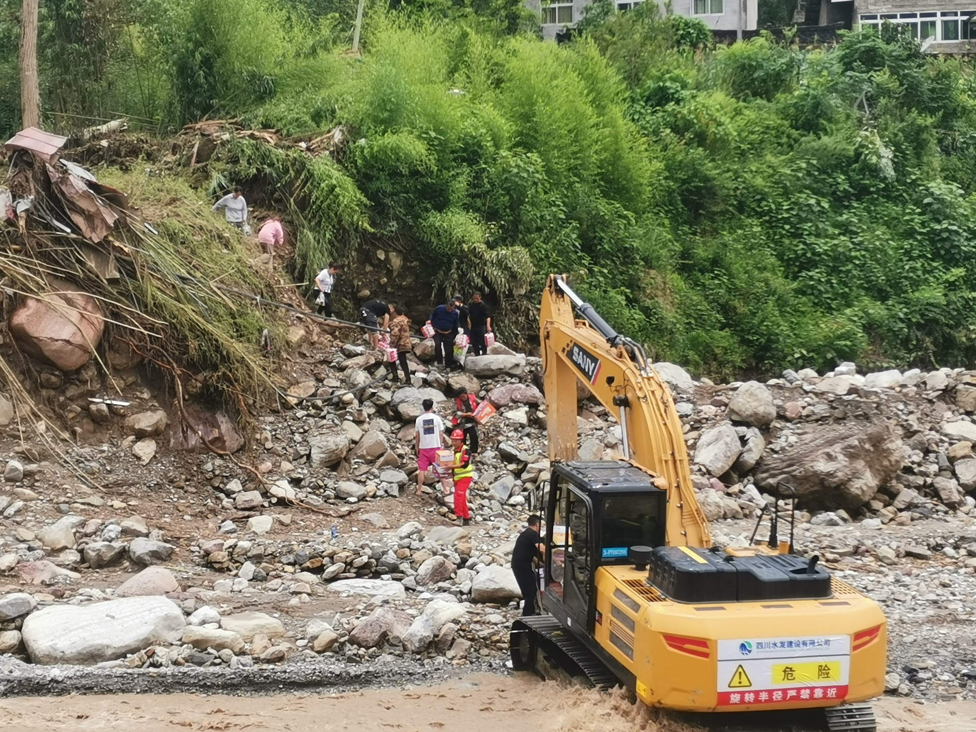 “大家快点儿,再快点儿!”党员突击队队长王川负责现场指挥,他迅速将队员们分工组队勘察地形并组织机械物料投入抢险工作。四个半小时后,抢险队伍在已冲毁的豆腐石桥处成功搭设1座人行便桥,加快了当地救援队伍紧急撤离村民的进程。抢险初期,由于运输等困难导致油料等物资短缺。为了节约汽柴油,共产党员王洪坚守一线,带领机械设备驾驶员们高温作业也舍不得开空调。共产党员朱军密切跟踪各小组进度,及时解决突发问题,共产党员余桃志、李大杰全力做好后勤保障、物资搬运,突破重重阻碍将工程机械用油源源不断送至现场。共产党员袁友军时刻密切注视周围环境,做好各项安全预警和保障措施……面对岌岌可危的碎石河道、堵塞桥孔,一线党员干部冲锋在前,大家日均抢险16小时,展现了av淘宝 国企的勇毅担当。