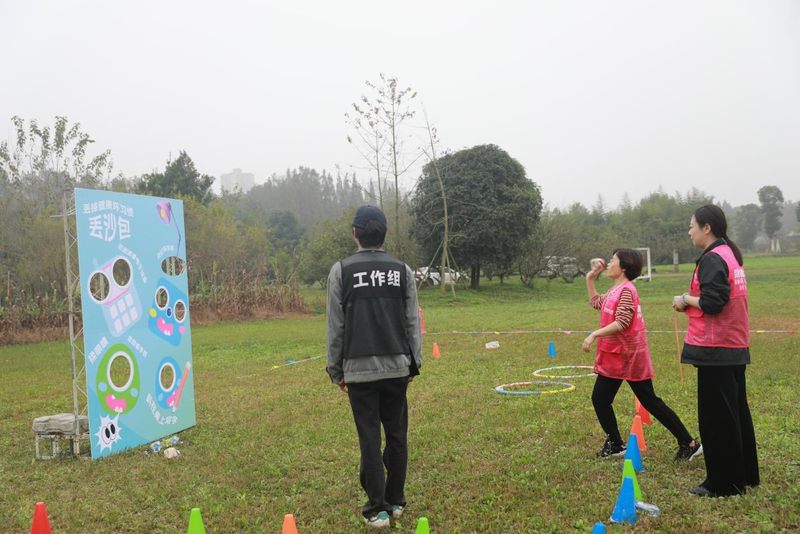 本次活动巧妙地融合了丰富的健康知识问答和形式多样的趣味运动。活动首先通过游戏互动将参与人员分成多个小组,然后按活动规则对各小组参加的活动进行积分排名。在“慧选健康”环节,参与者对健康知识作选择并在规定时间奔跑至划定的A或B区域,选择错误被暂时淘汰;在趣味运动环节,上一活动环节被淘汰者通过飞盘九宫格、正中靶心、踢毽击锣、呼啦圈、扔沙包等趣味运动“复活”后,再次参与“慧选健康”活动。