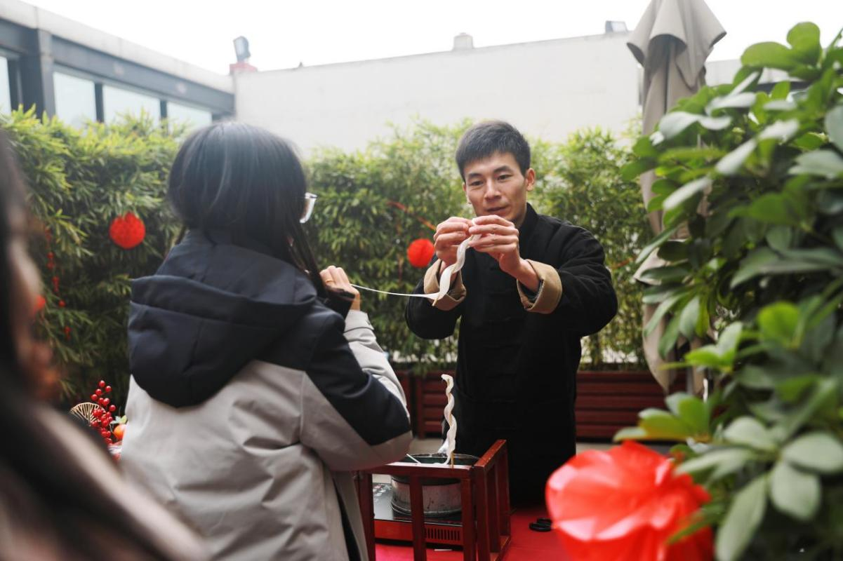 在“吹糖人”体验区,大家感受糖在口中逐渐成型的奇妙过程,在轻松愉悦的过程中领略到了中国传统文化带来的的独特魅力。