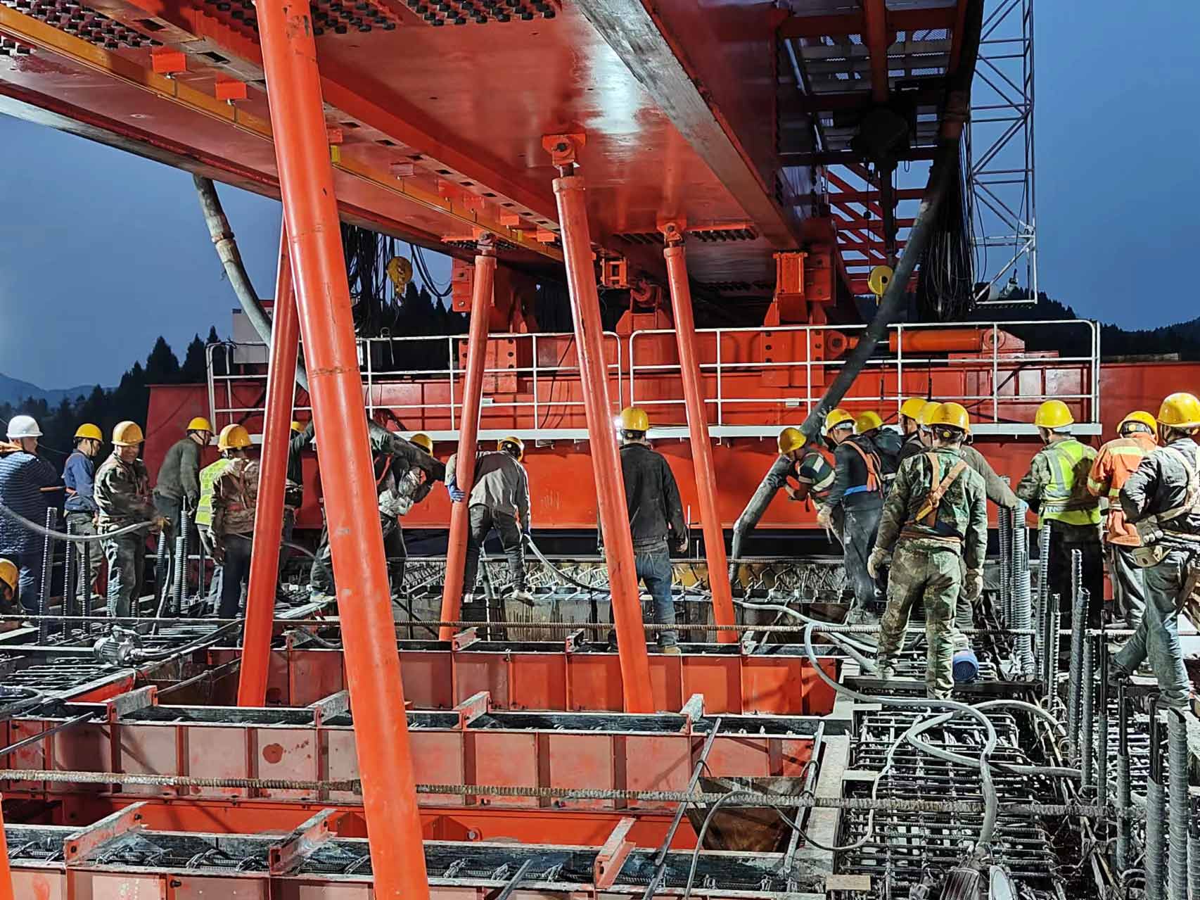 老吴坝渡槽正在进行混凝土浇筑