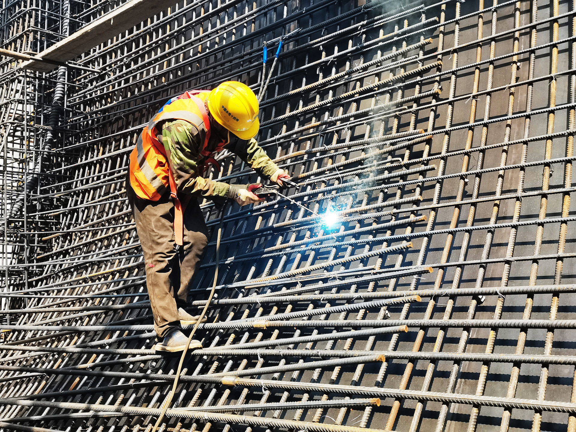 粟家庙渡槽,工人正在焊接槽身渐变段钢筋